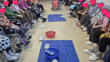 오늘은 어르신들의 치매 예방 및 활력증진을 위한 힘뇌 체조를 해보았습니다.흥겨운 음악에 맞추어 앉아서 하실 수 있는 동작들을 따라해보며